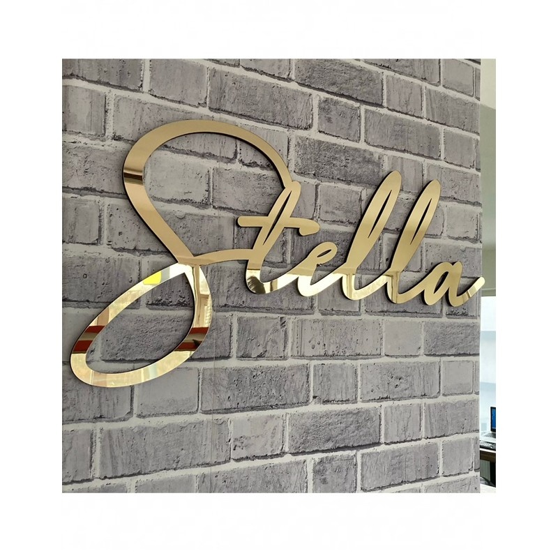 Una soluzione elegante e di grande impatto visivo per dare enfasi a testi o brand. Realizzate in plexiglass estruso colore oro specchio gold mirror di alta qualità presentano bordi netti lisci e lucidi caratteristica tipica del taglio laser. Disponibili con spessore di 3 mm;e con altezza di 10 cm; 20 cm; 30 cm; 40 cm; 50 cm fino a 130 cm